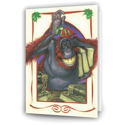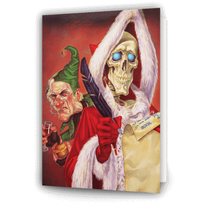 Hogswatch, the ‘jolly’ festival celebrating the Winter Solstice and the New Year across much of the Main Continent and various other areas of Discworld. It falls on the 36th of December, the New Year beginning on the 1st of Ick. It includes elements similar to our own Roundworld Christmas, including the rather sinister Hogfather. We much prefer Death and Albert take on proceedings . We’re delighted to offer this fantastic collection of high quality Hogswatch cards featuring a selection of well-loved characters. All A5 cards are only £2.95 each and come complete with coloured envelope. The message inside each card is shown below the images. Featuring the stunning artwork of artist Paul Kidby, these are again long-standing favourites.
